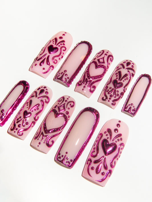 A collection of custom Valentine's Day nails, with new designs & some old fan favs