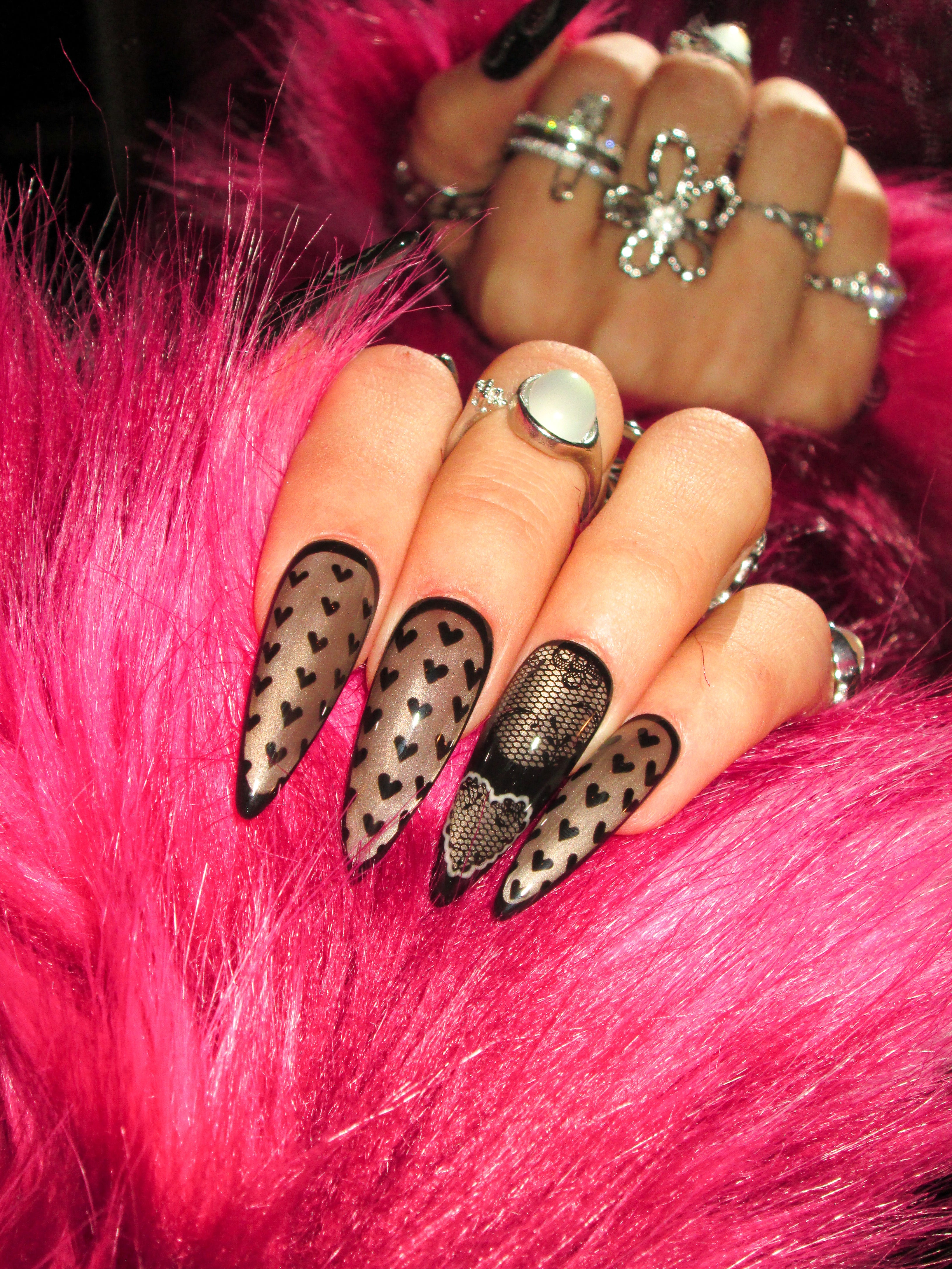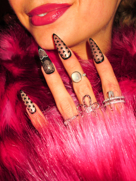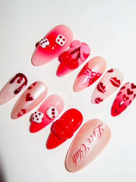 A collection of custom Valentine's Day nails, with new designs & some old fan favs